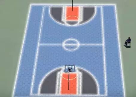 另外的一个使用场景就是运动场,LED灯系统可以让一块场地从篮球场→