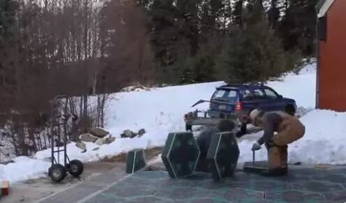 在制造上来说,也是如此,每块太阳能路面使用的全部是回收塑料颗粒...