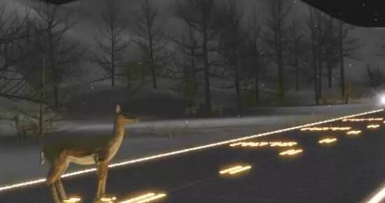 如果未来哪天环境变好了,公路上开始出现野生动物时,智能路面系统也能利用压力感应,探测到小动物的出现,并且通过LED灯系统的闪烁,提醒司机们避让