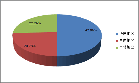 中国工业废水处理行业市场规模主要集中在华东、中南地区,市场规模分别为362.09亿元、175.14亿元,分别占全国市场规模的42.96%、20.78%,合计占比73.7%。