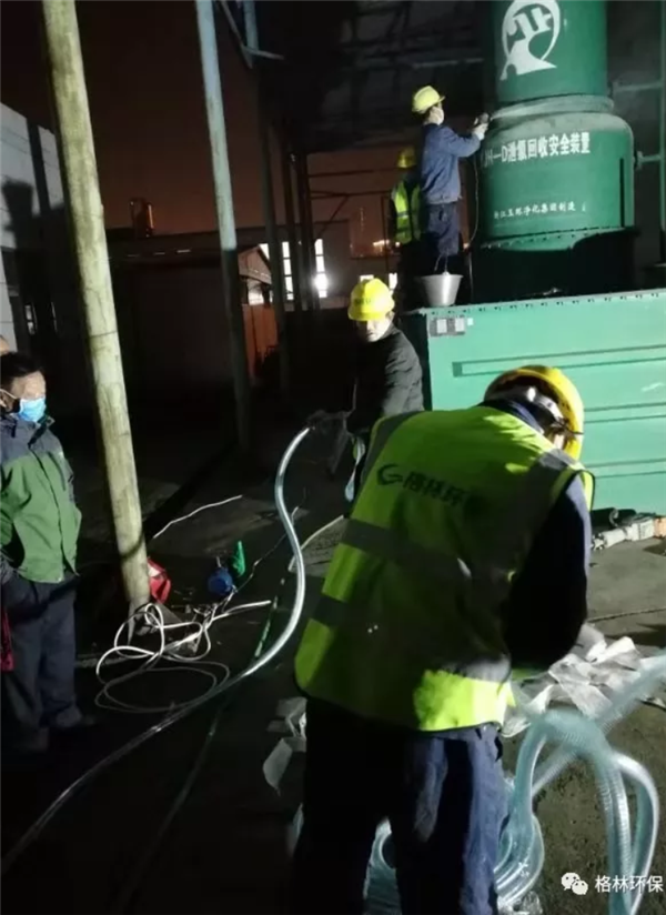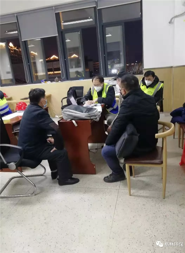 ▲格林环保宋总、孙工与中建三局技术人员一起不分昼夜并肩战斗