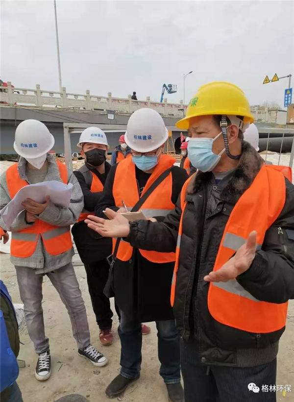 ▲格林环保工程师黄工正在与施工方进行工艺交底