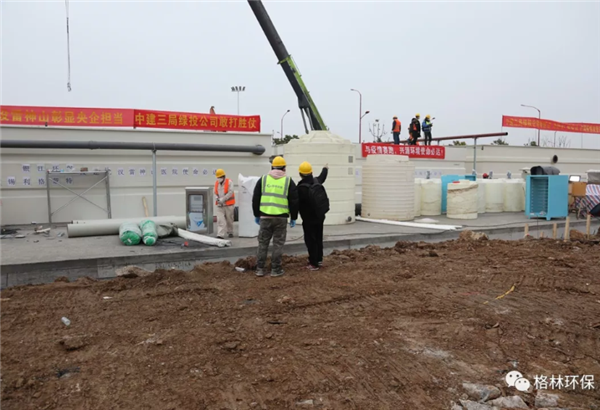 面对武汉火神山、雷神山医院工期短、任务重、工种交叉施工作业多等项目难点,以及施工人员春节休假和疫情的双重压力。为了治病救人,工地施工人员24小时轮番抢进度。格林环保也第一时间集结了运营方案设计人员、污水处理设备设施调试人员、污水运营操作人员,于1月29日赶赴医院现场投入这场疫情之中。