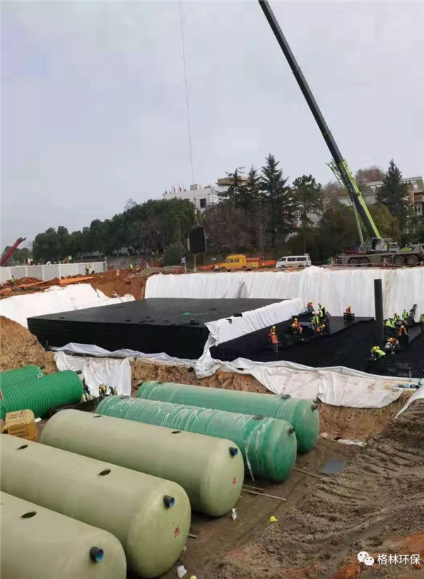 2月1日,火神山医院水处理核心单元雨水调蓄池、化粪池、接触消毒池等大面积吊装任务,以及2个消毒池罐体,5个化粪池罐体、基坑内雨水调蓄池、PP模块设备安装工作已全部完成。