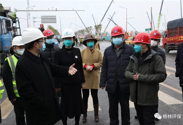 2月2下午,湖北省生态环境厅厅长吕文艳、湖北省生态环境厅副厅长李瑞勤、武汉市副市长刘子清、武汉市生态环境局局长阎忠宁赶赴雷神山医院污水处理现场,慰问所有相关施工单位。格林环保公司作为参与者之一,接受了省、市领导的问询与视察,为即将投入使用的医院做最后准备。