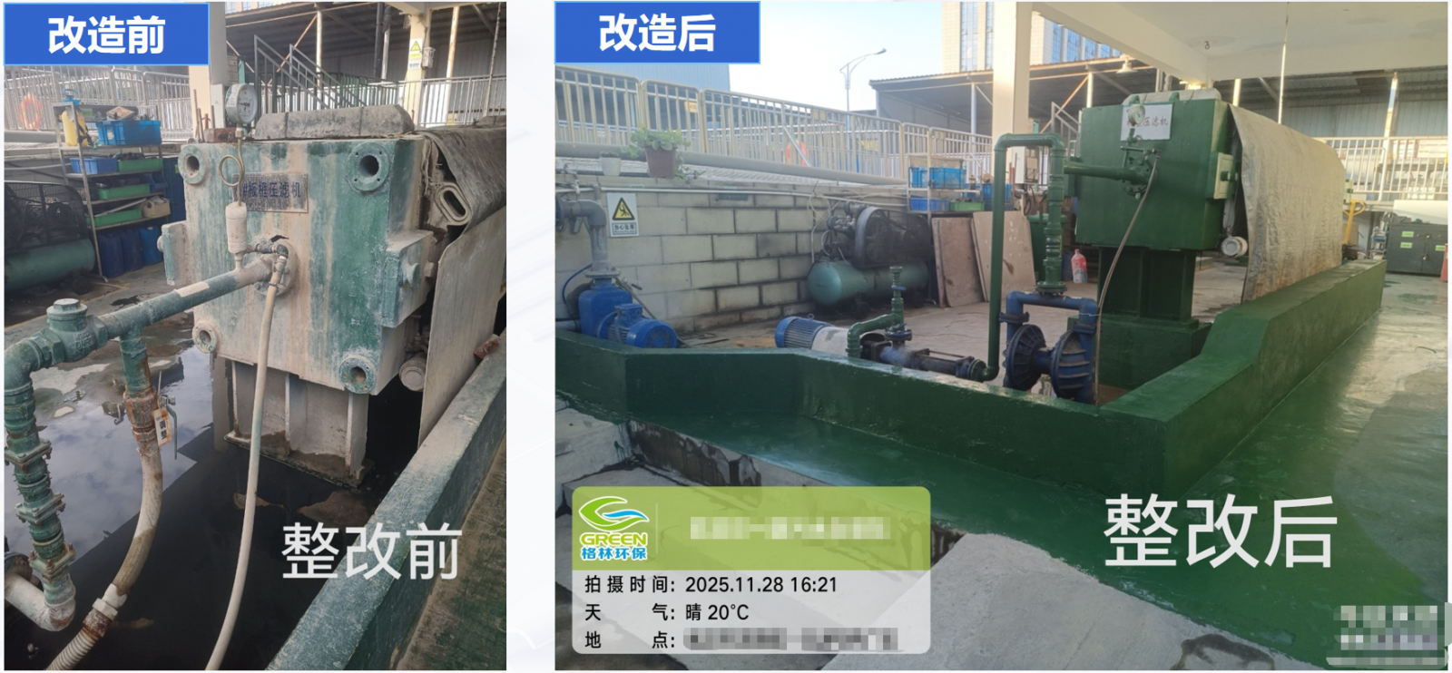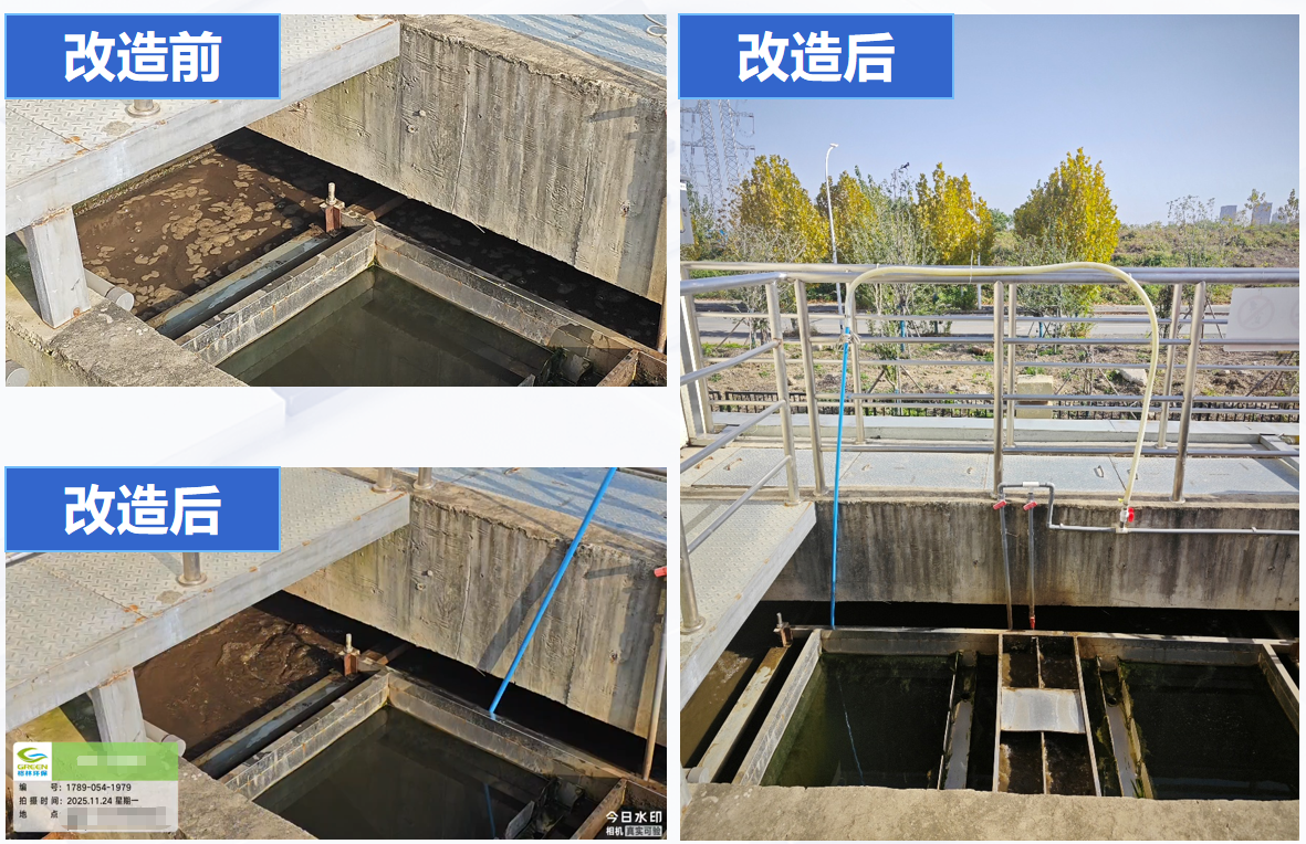 点评:通过利旧闲置板框,重新安装隔膜泵与螺杆泵(一用一备),实现了多重效益:有效降低调节池液位,杜绝雨天漫池风险;同时美化了现场环境,并节约了药剂与电力消耗。