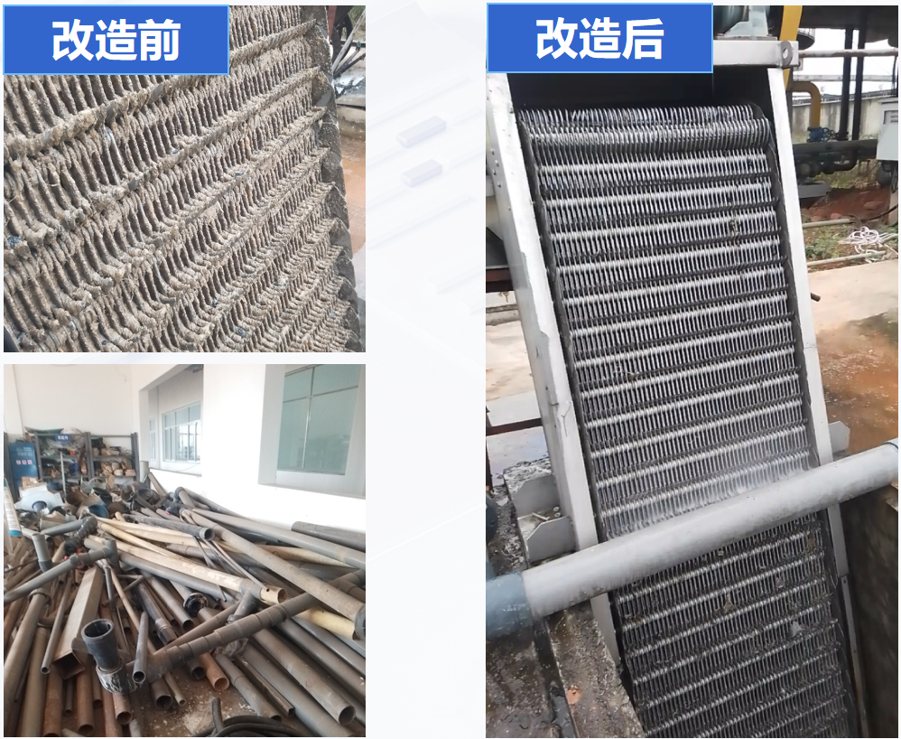 点评:通过对利旧管道和潜水泵进行设计、加工、改造,实现自动取水清洗格栅机耙齿的功能。清洗效果显著,改善现场环境卫生,废弃材料利旧改造节省成本,减少人员劳动强度,降低人员池边操作安全风险。