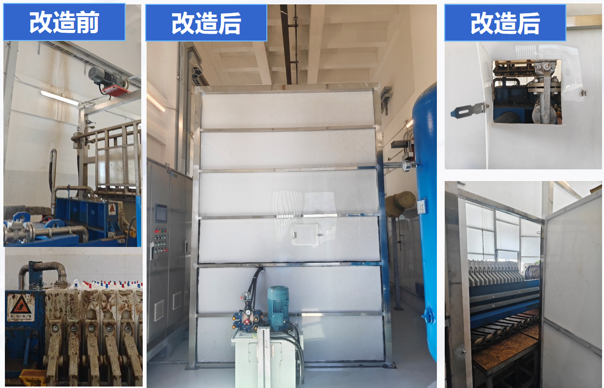 点评:使用方管及亚克力,为板框机设计制作防护罩。结构完整方便操作卸泥,有效减少污泥喷溅污染,美化现场操作环境,降低人员劳动强度,隔绝水、电安全隐患。