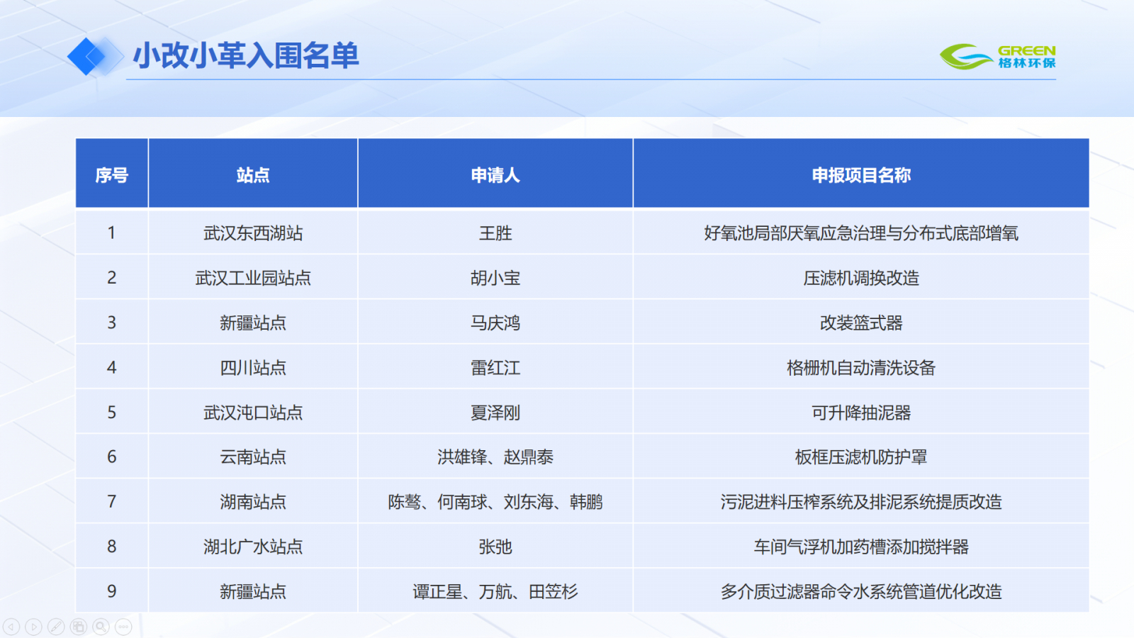 小改小革是格林每年以站点为单位,开展的针对污水处理工艺设备进行技术性改造的活动。旨在立足站的实际需求,通过创新改造为运维提质增效。