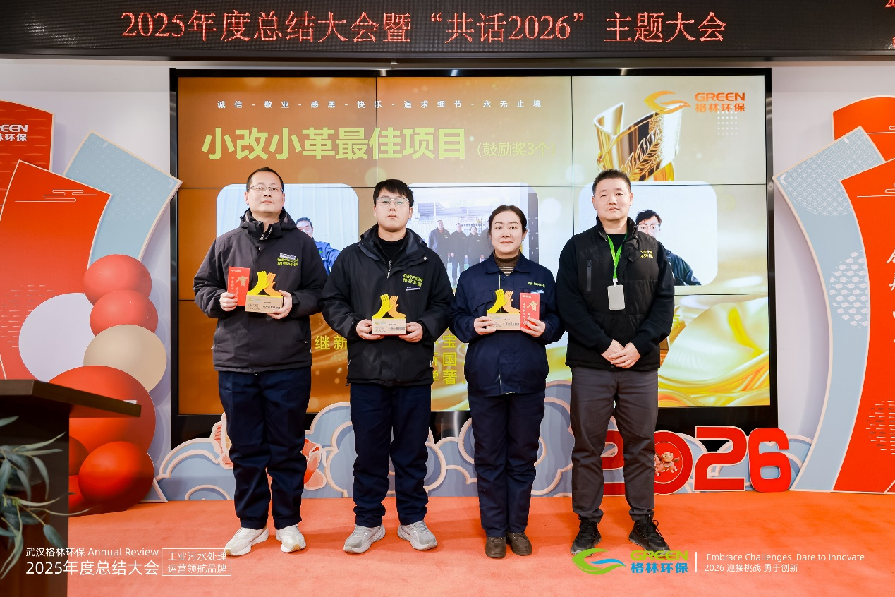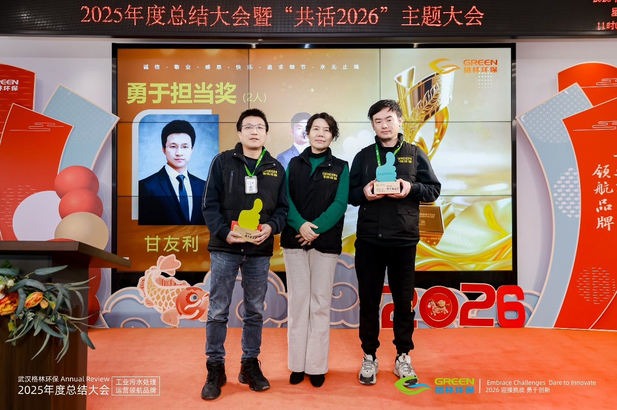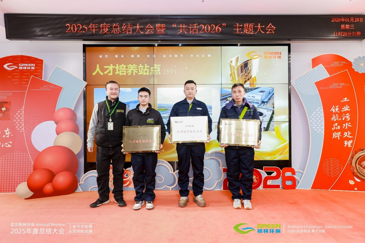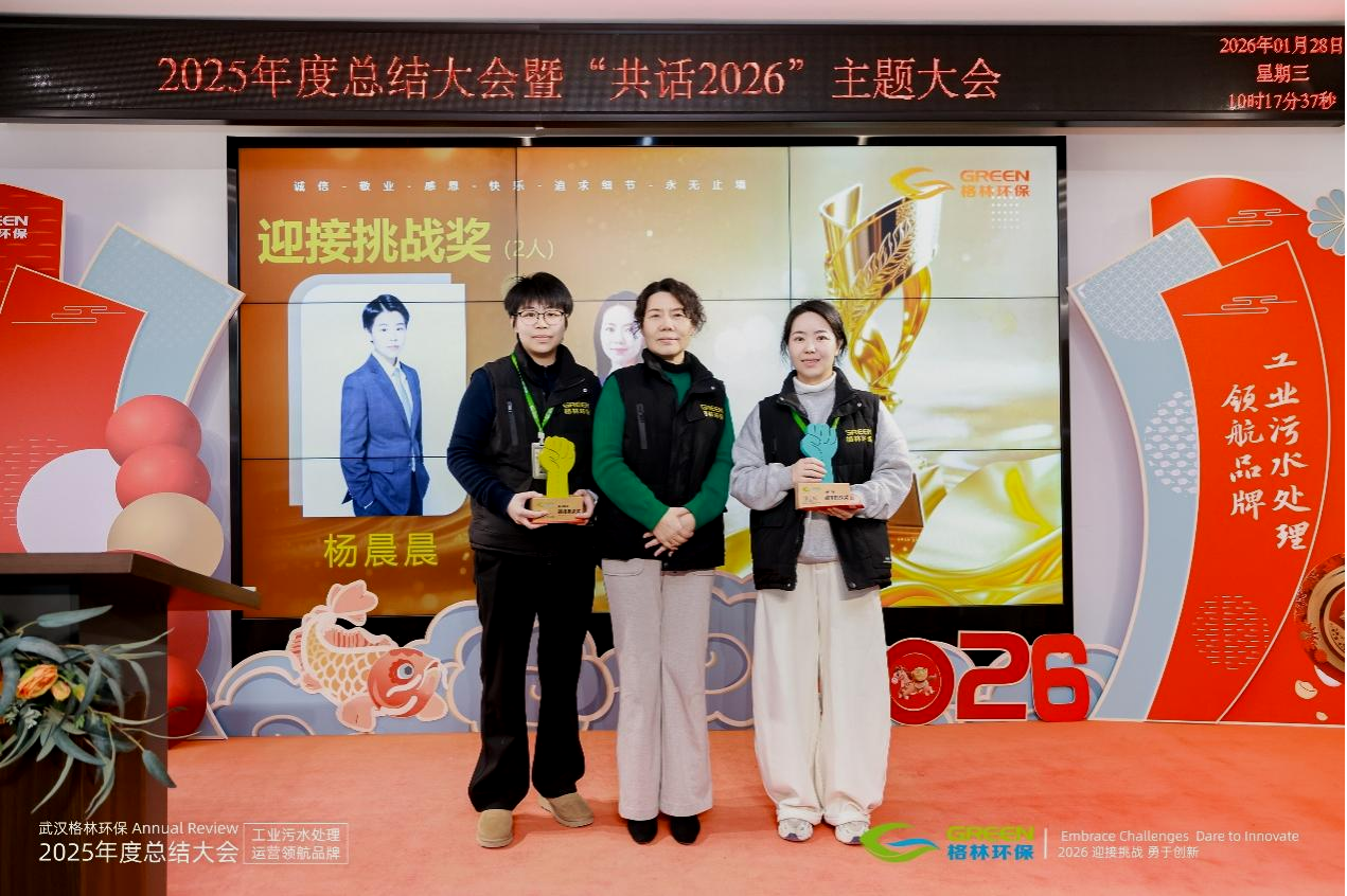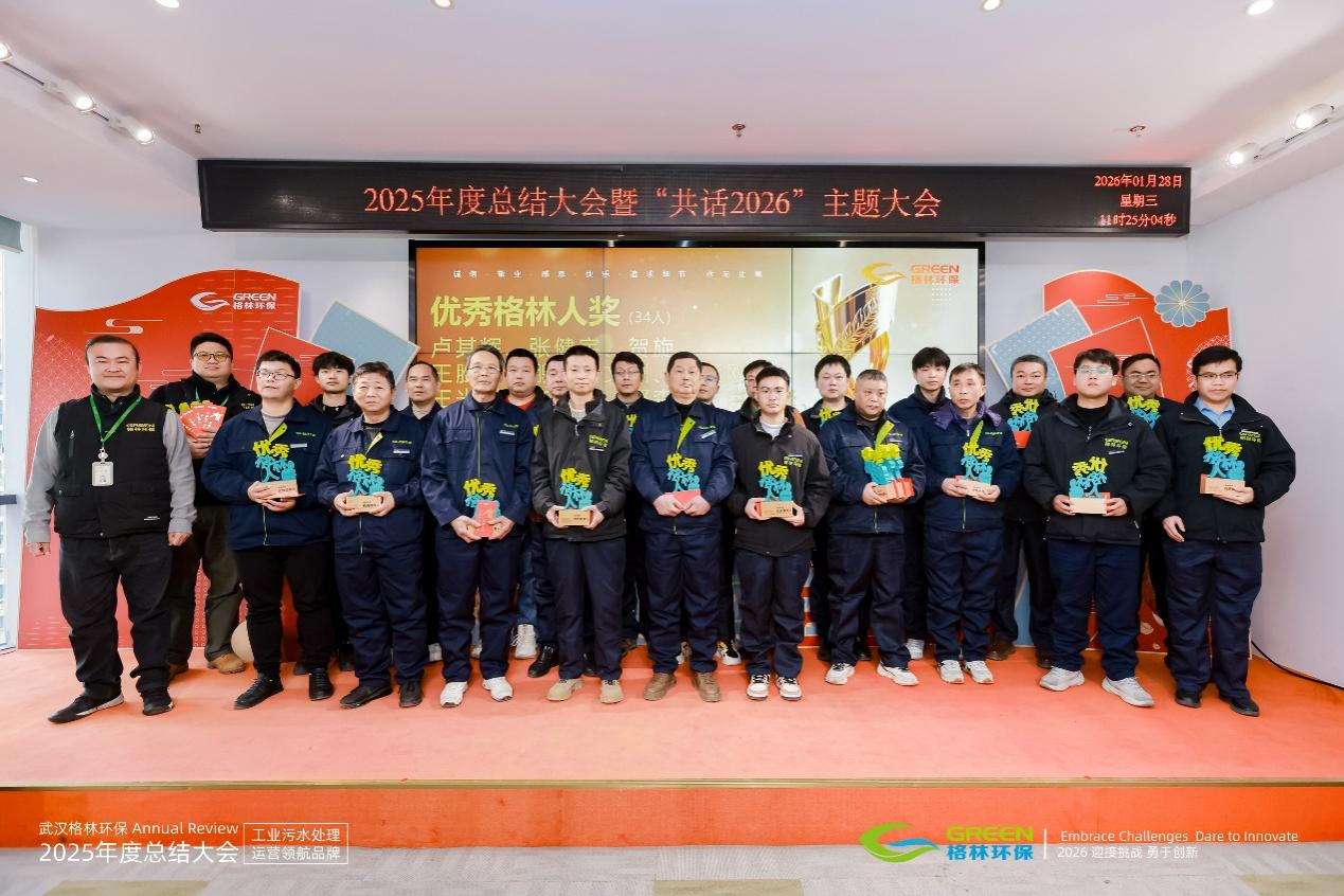 2026年1月28日,武汉格林环保“2025年终总结表彰暨共话2026”大会圆满落下帷幕。格林人围绕“创造价值、迎接挑战、勇于担当”展开深入交流,既致敬了过去一年每一位奋斗者的辛勤付出,也吹响了2026年全新征程的号角。