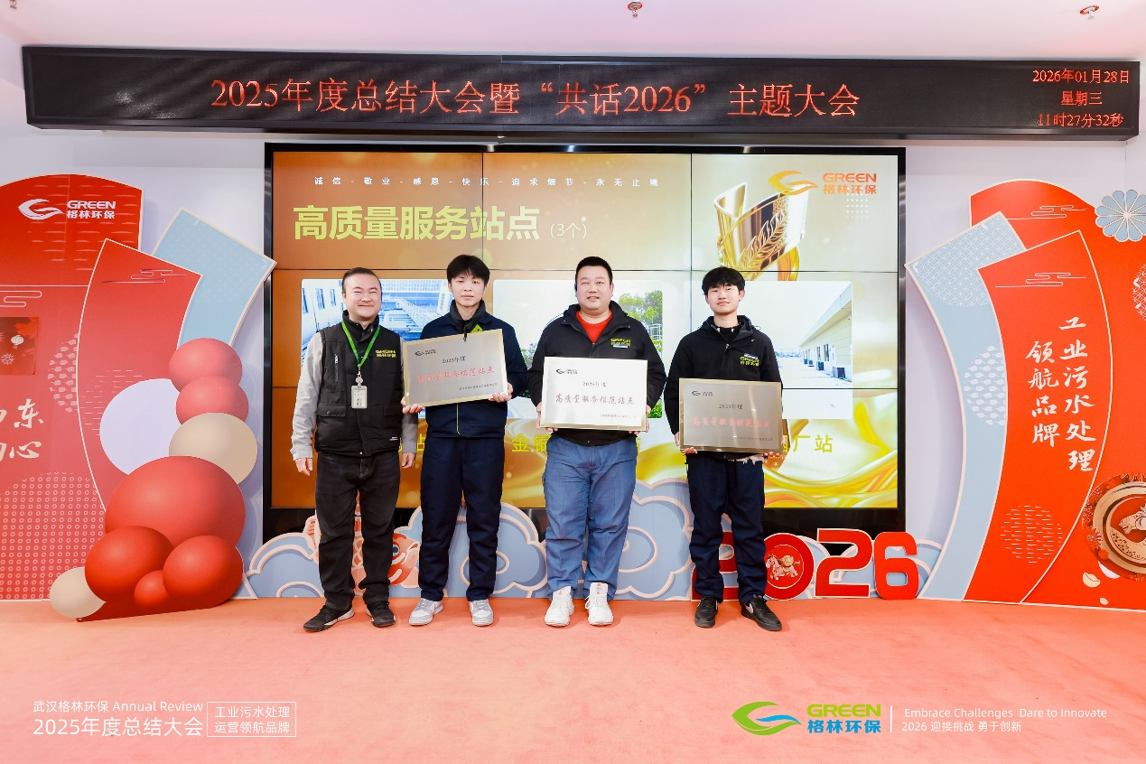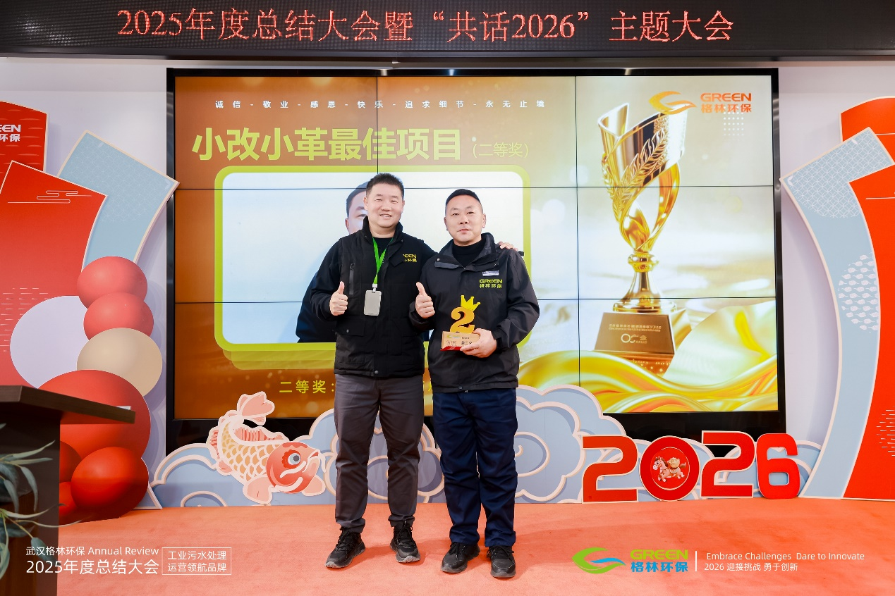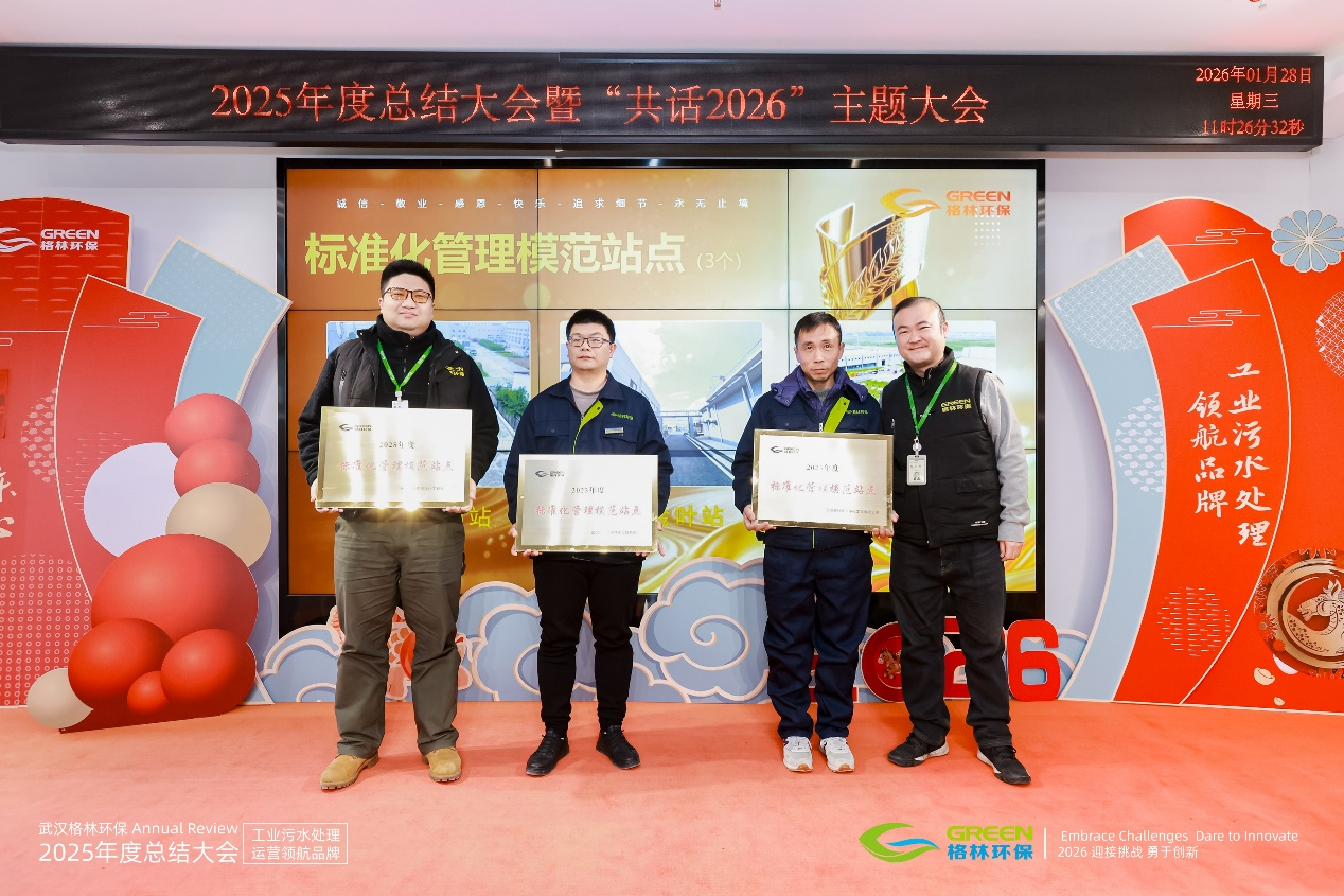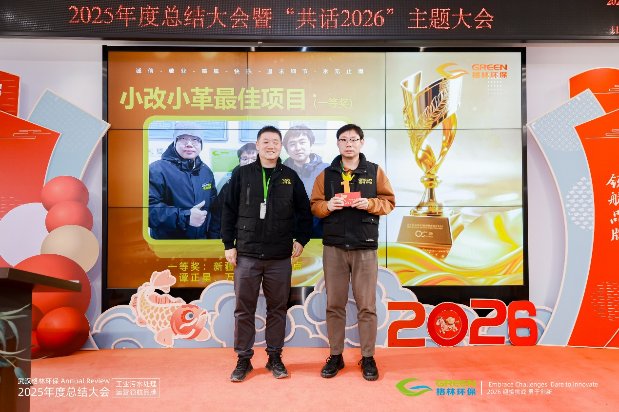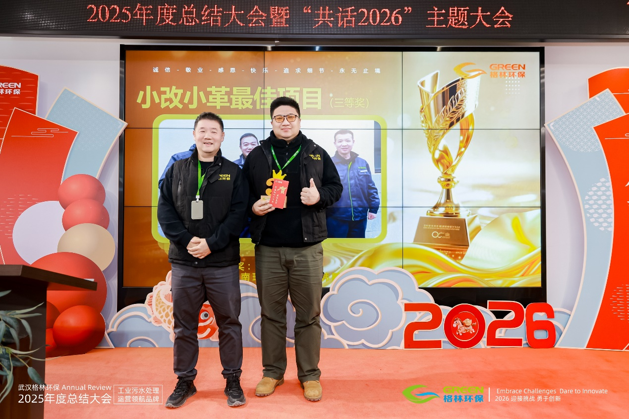 2026年1月28日,武汉格林环保“2025年终总结表彰暨共话2026”大会圆满落下帷幕。格林人围绕“创造价值、迎接挑战、勇于担当”展开深入交流,既致敬了过去一年每一位奋斗者的辛勤付出,也吹响了2026年全新征程的号角。