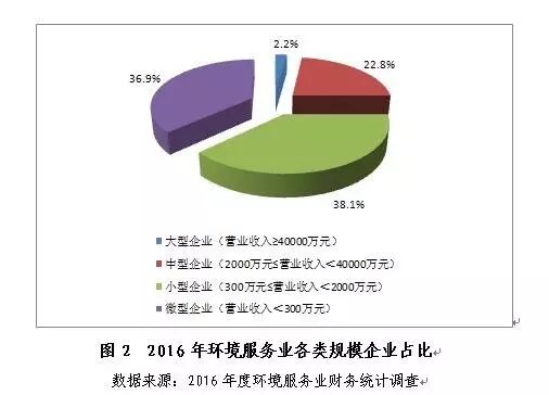 导 读 基于中国环境现状和政府对环保工作的高度重视,为提升生态环境质量提供前沿技术保障与系统解决方案的环境服务业作为环保产业的重要组成部分,成为政府和社会重点关注的领域。 2017年,按照国家统计局要求,环境保护部在全国范围内组织开展以2016年为基准年,覆盖环境与生态监测、环境治理业、生态保护三大领域(包含10个细分领域)中独立核算的环境服务从业企业、行政、事业法人单位的统计调查,中国环境保护产业协会为统计调查工作提供技术支持。本文基于2016年度环境服务业财务统计数据,简析及呈现环境服务业发展趋势,以期为行业企业决策和发展提供参考。 2016年,国家统筹推动“五位一体”总体布局,协调推进“四个全面”战略布局,以改善环境质量为核心,以解决突出环境问题为重点,扎实推进环境保护工作。3月出台的《国民经济和社会发展第十三个五年规划纲要》明确提出“发展绿色环保产业,支持技术装备和服务模式创新,促进节能环保产业发展壮大”,国家《“十三五”生态环境保护规划》也于同年发布实施。在此背景下,我国环境服务业2016年呈现稳中有升的发展态势,行业规模继续扩大、行业集中度及空间格局基本稳定、收入稳步增长、利润水平小幅上扬、纳税贡献不断提高,对国民经济增长贡献显著。具体呈现以下7个方面的趋势: