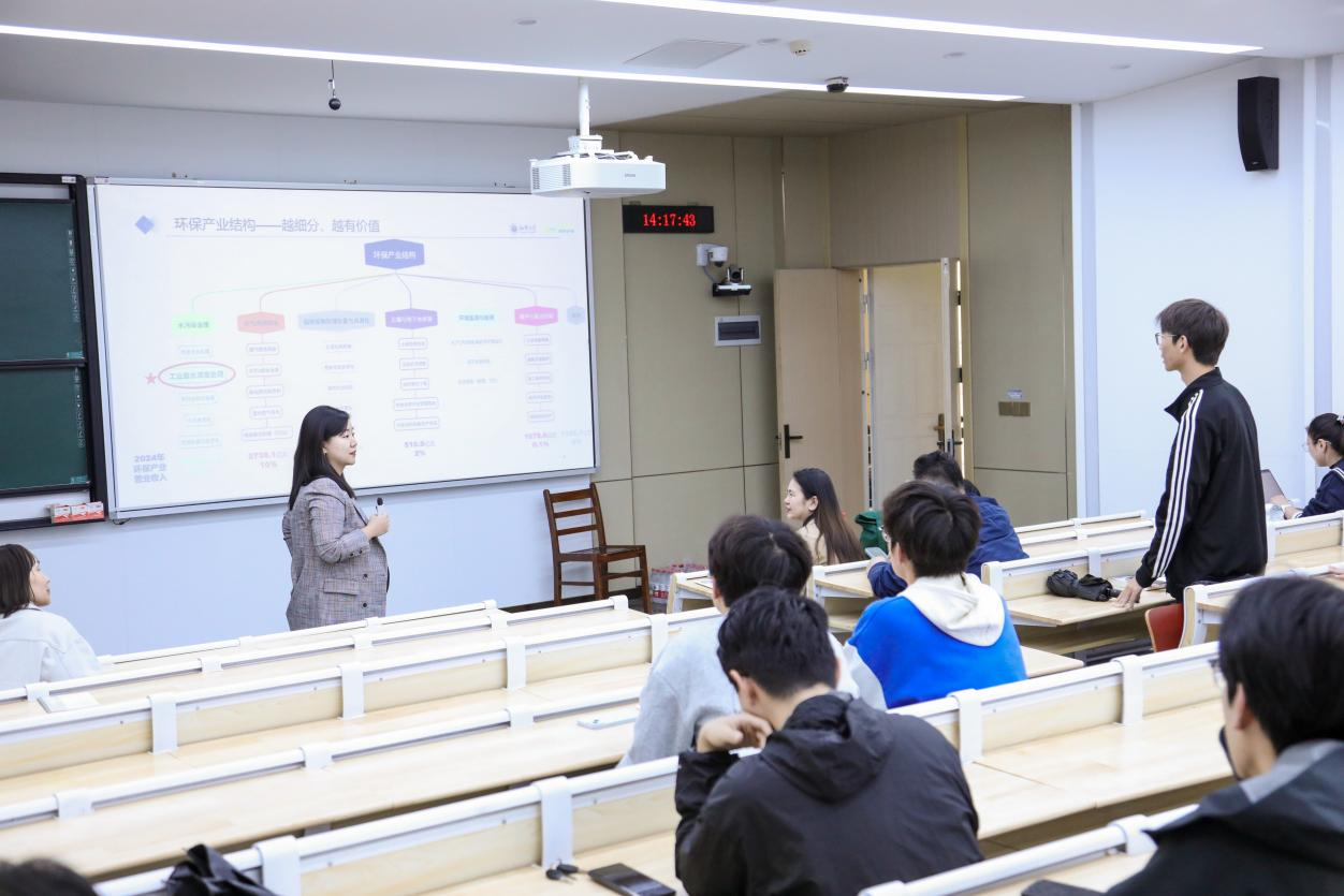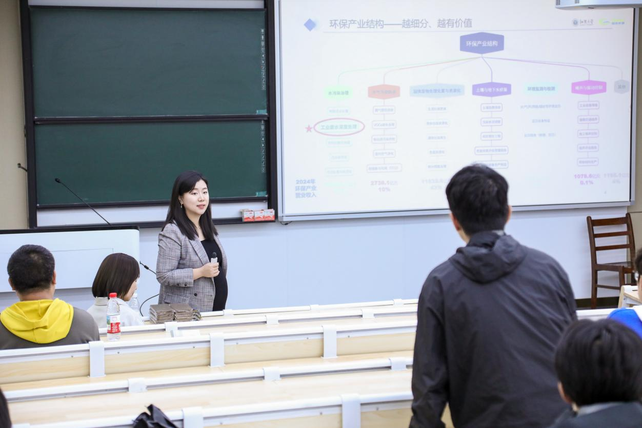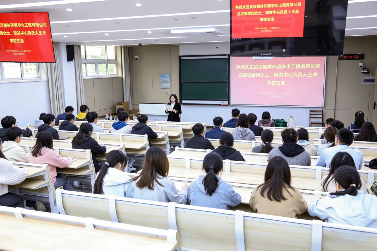 工业污水处理行业呈现三大趋势:从政策驱动转向技术驱动、从成本消耗转向价值资产、从环保专才转向复合型人才。姜琦作为企业宣讲人,从行业视角出发,向同学们分享了三个核心观点:"观点一:任何行业都需要AI赋能,环保也不例外。环保不是“慢行业”,AI也不是噱头。从精准加药到智能运维,AI正在让环保从“成本中心”变成“价值中心”。观点二:环保行业集中度低,深耕细分领域大有可为。环保赛道众多,没有一家企业能通吃。越细分、越专业、越有长尾效益——这正是格林26年活得好的秘诀。观点三:未来需要复合型人才,而不是单一专才。只懂环保不够,只懂AI也不够。环保工艺 + 数字化/智能化,才是未来最稀缺的核心竞争力。"
