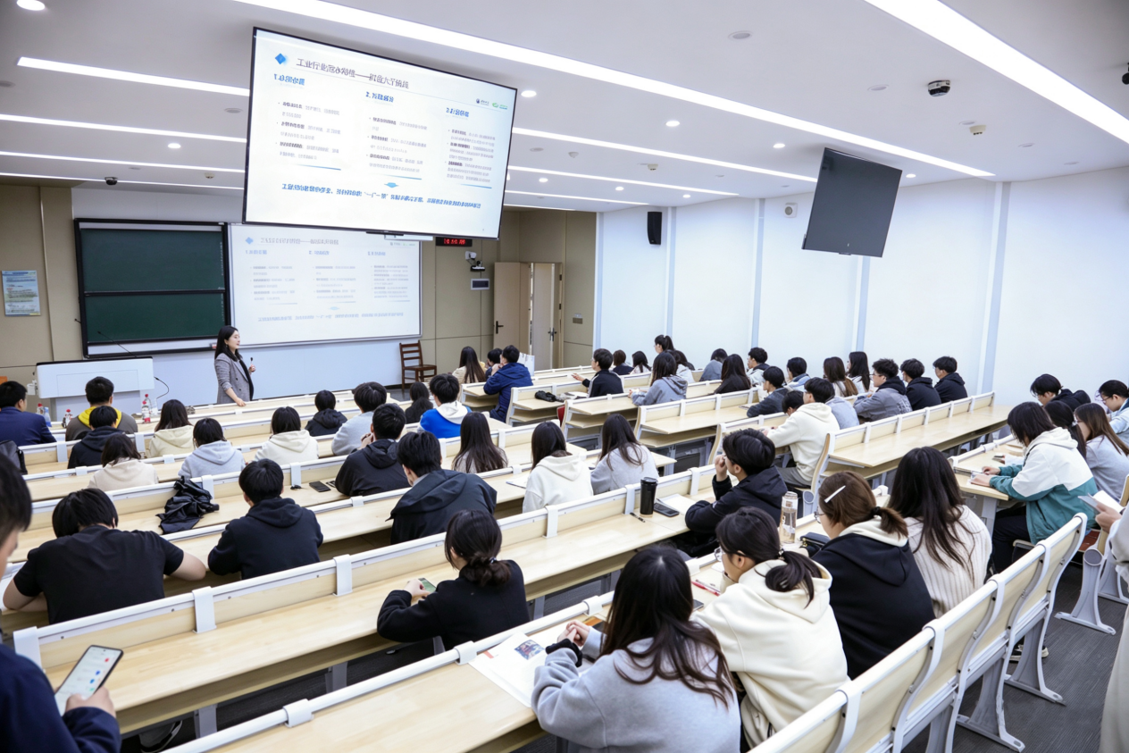 台下坐着环境工程学院和人工智能学院的同学们——有的对工艺好奇,有的对算法兴奋,现场交流热烈,跨学科组队的“火花”已经点燃。